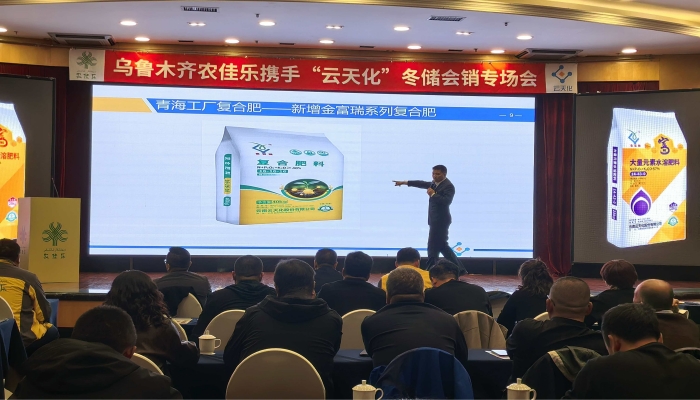 10月20日,新疆农资集团所属乌鲁木齐农佳乐农业科技有限公司联合云天化集团新疆大区在美丽华酒店成功举办首场冬储会销专场会,现场订货量突破4000吨,为打好秋冬经营服务主动仗奠定坚实基础。